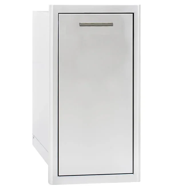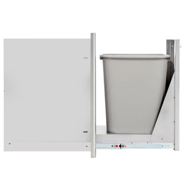 Need a place for a trash bin in your outdoor kitchen but don't have the space for one? Check out this built-in narrow trash drawer by Blaze Grills. The roll-out drawer is only 13-7/8" wide and designed with space in mind, making it ideal for smaller or congested outdoor kitchen.