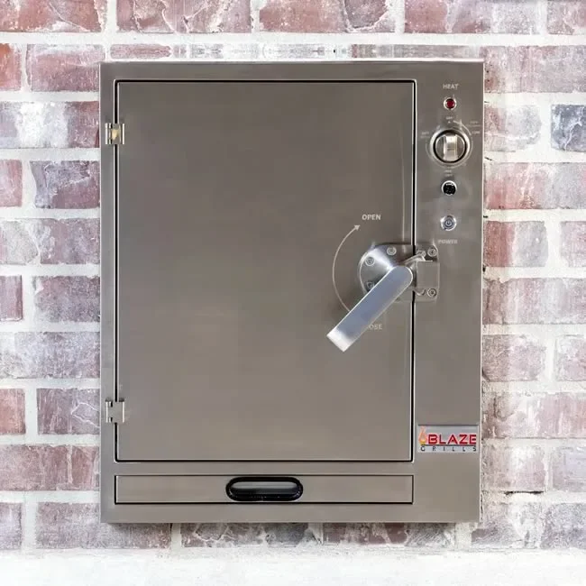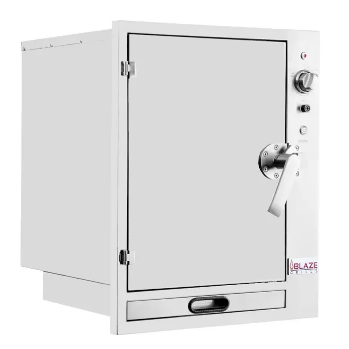 The outdoor built-in electric smoker by Blaze is water-resistant and made from 304 grade stainless steel. The smoker is super easy to use and can cook most anything including ribs, tenderloins and even cheese.
