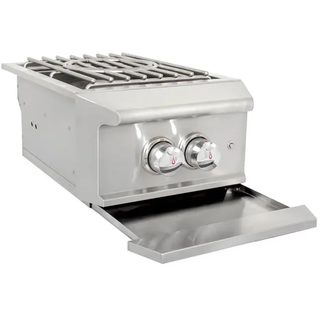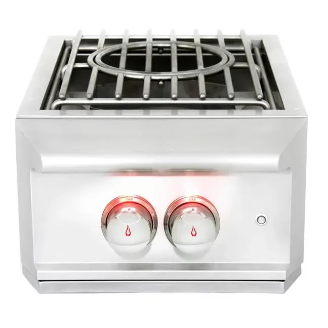 The Blaze Professional LUX Built-in Power Burner comes with accent lights and independently controlled 304 cast stainless steel inner and outer burner rings allowing a variety of cooking configurations. The inner ring is rated for 25,000 BTU and the outer ring is rated for 35,000 BTU for a combined total of 60,000 BTU. The inner ring is great for simmering sauces and the outer ring is perfect for large skillets and pans. Use both burner rings together when boiling or frying. The cooking grid is constructed from heavy-duty stainless steel rods with a removable inner ring for cooking with a wok.
