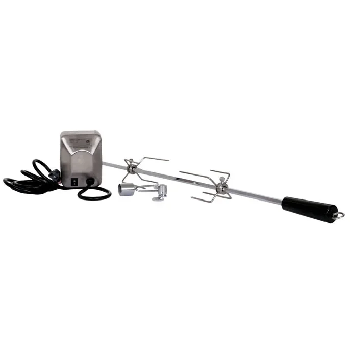 This rotisserie fits Blaze Grills 32" & 40" models. Adding a rotisserie kit allows you to roast whole chicken, pork loin, beef roasts and much more in the convenience of your BBQ grill. The 120V motor is enclosed in a stainless steel housing to withstand the outdoor elements. This kit includes the motor, spit rod with handle, 2 forks and a counter balance. The rotisserie is warranted for 1 year to the original owner against defects in manufacturing and workmanship. This warranty extends to the original purchaser against manufacture defects for products purchased for ordinary single-family home use.