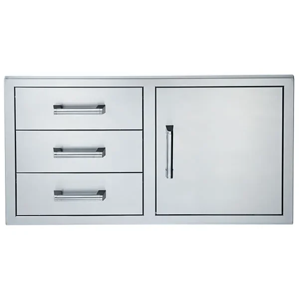 The Broilmaster Triple Drawers with Single Access Door adds practical storage in any outdoor kitchen. Constructed from commercial grade 304 stainless steel to withstand harsh outdoor elements.