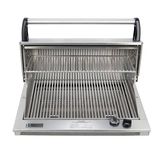 A Fire Magic counter top gas grill is an excellent way to recover space for other items when designing an outdoor kitchen. This grill will drop in to a small cutout in the counter top without effecting the front of the cabinet.