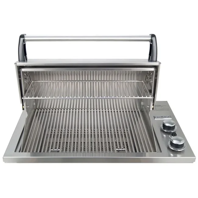 The Fire Magic Deluxe has all that make Fire Magic legendary, but in a smaller format. 368 square inches of cooking space (16" X 23"). Two cast stainless steel burners power Two independently controlled cooking zones powered by 42,000 BTU. Each cook zone has it's own control knob and battery operated electronic ignition.