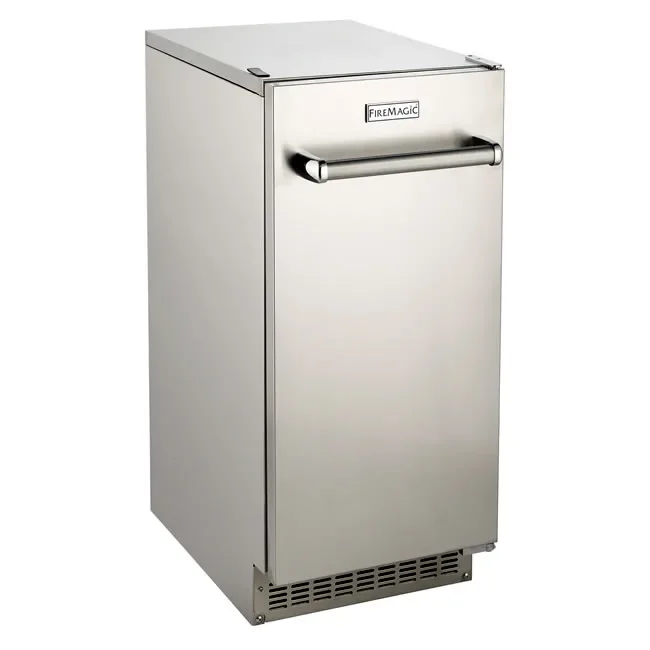 All new Fire Magic ice machine can be used outdoor or indoor. This machine has a large capacity and it produces 63 lbs of ice in a 24 hour period and can store up to 27 lbs in its storage bin. An ice machine is different than an ice maker in the fact that a maker is like one in your refrigerator freezer and a machine is wet ice that is constantly producing ice like in a restaurant. This one is UL listed for outdoor use and an Energy Star rated appliance. The ice machine uses constant flow technology continually producing ice on demand like magic as its used. Suitable for indoor use as well. Put a little magic in your life.