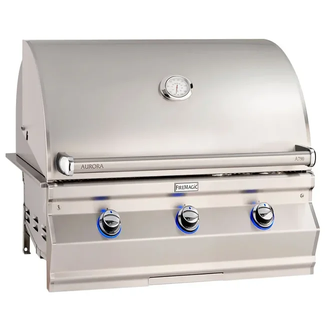 If it's time to upgrade your current built-in gas grill or if your family is looking for the perfect barbecue to add to an outdoor kitchen installation, look no further. Made right here in the USA, Fire Magic built-in gas grills come loaded with tons of great features and a stylish stainless steel finish. With analog temperature guage built-in the lid, interior lighting and an extra large cooking surface, this will be the last gas grill you'll ever need to purchase.