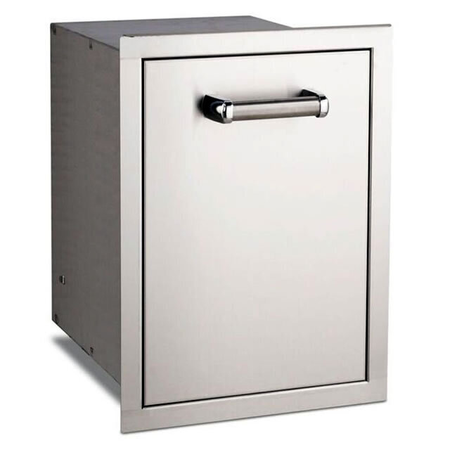 The Fire Magic Built-In Waste Cabinet includes two includes two removable 3.25 gallon trash bins, one black and one blue.