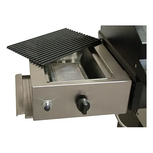 This is a Sear Magic infrared zone side cooker made to fit in place of the left side shelf of your Phoenix Grill. The infrared burner is made of stainless steel with rust proof anodized aluminum cook grids that heat up faster than any other cooking surface for uniform temperature. The cook grid is reversible with a smooth side for cooking delicate foods like fish. This unit also features electronic ignition and a pull out drip tray for easy cleaning. Comes with all you need to connect to the grill.