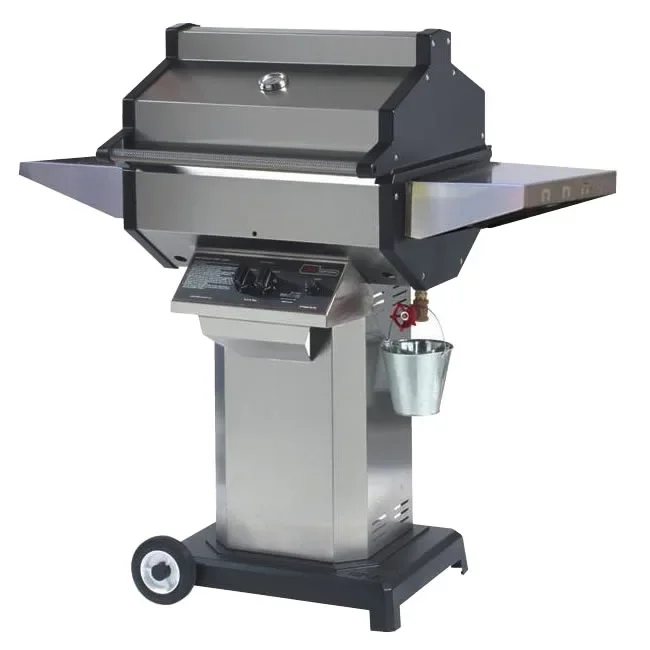 This is the new and improved all stainless steel model Phoenix gas grill. Excess grease is directed into the large collector bucket, eliminating unwanted flavor damaging flare-ups. What is outstanding about cooking with indirect heat is the food has such an extraordinary taste and can be prepared so easily. Food with no advance preparation will bring excellent results. For a gourmet finale to a busy day, the food can be placed onto the Phoenix and you can walk away and not worry about flare-ups.