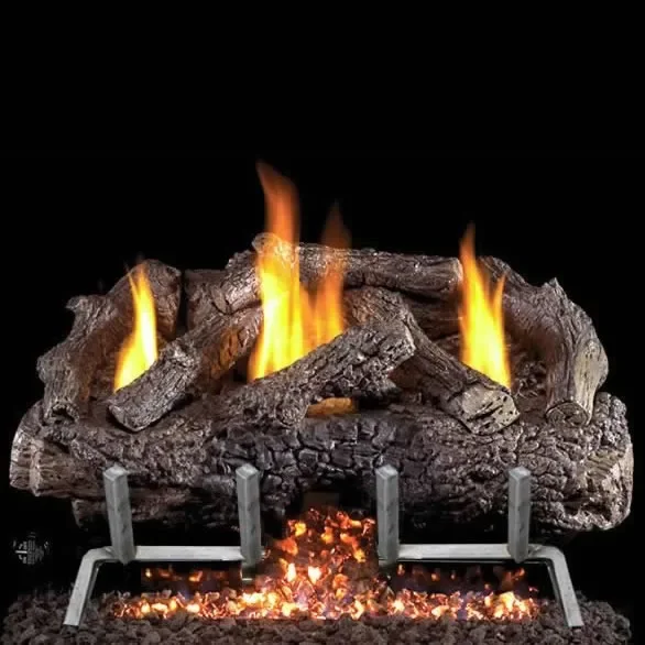 The Real Fyre 24" Charred Frontier Oak ventless outdoor gas log set by RH Peterson offer up to 37,000 BTU of heat with glowing embers and an excellent flame pattern. This log set features an all stainless steel burner system that was built to last a lifetime and withstand the outdoor elements. This log set is available in manual control, variable flame height remote control that allows you to turn the flame up and down from the remote or electronic ignition so you can light the pilot from the remote.