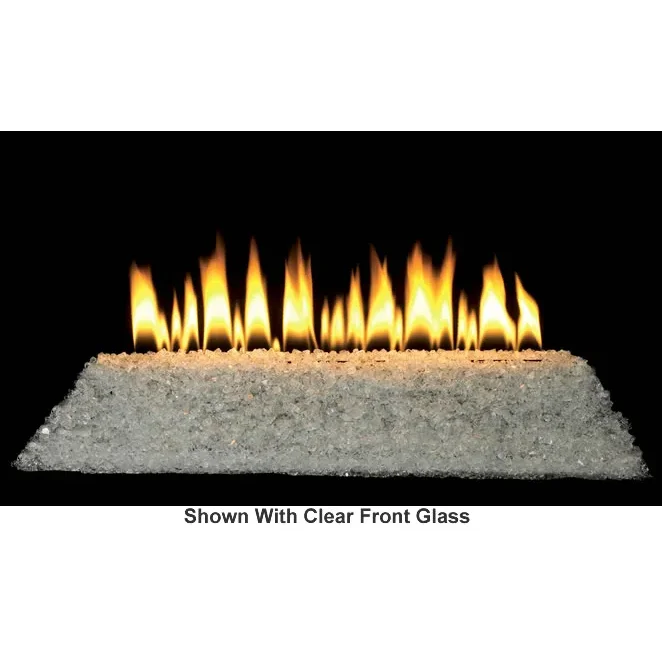 This 18" contemporary ventfree fireplace burner comes with a remote ready control valve and two different remote control options. Your Loft Series Burner arrives finished in lustrous matte black. Decorative accessory tops are available in polished black and brushed stainless steel, they install in minutes without tools to instantly change the look and character of your fireplace. Empire also offers several styles of decorative glass to conceal the burner and create the illusion of flame floating above a reflective field. All of the glass starts as tempered panes that are shattered, screened for the proper particle size, and tumbled to minimize sharp edges. To learn more about control valves click here. Also available in a 10,000 BTU bedroom approved model.