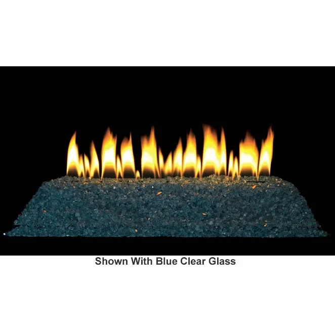 This is a 24" contemporary ventfree see-thru fireplace burner that is remote ready and shown with optional clear frost glass. Your Loft Series Burner arrives finished in lustrous matte black. Decorative accessory tops are available in polished black and brushed stainless steel, they install in minutes without tools to instantly change the look and character of your fireplace. Empire also offers three styles of decorative glass to conceal the burner and create the illusion of flame floating above a reflective field. All of the glass starts as tempered panes that are shattered, screened for the proper particle size, and tumbled to minimize sharp edges. To learn more about control valves click here.