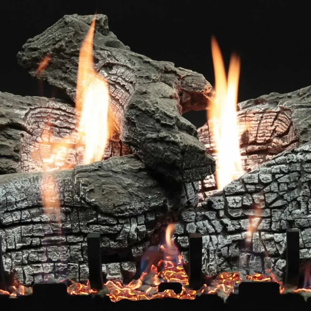 This 24" Stacked Wildwood log set by Empire has a remote ready gas valve if you choose to add a remote control you will have no problem doing so. You enjoy twice the beauty using half the fuel. We've also concealed the controls for more appeal. The Slope Glaze Burner System and Wildwood log set introduces the next generation of comfort and the most lively flames available.