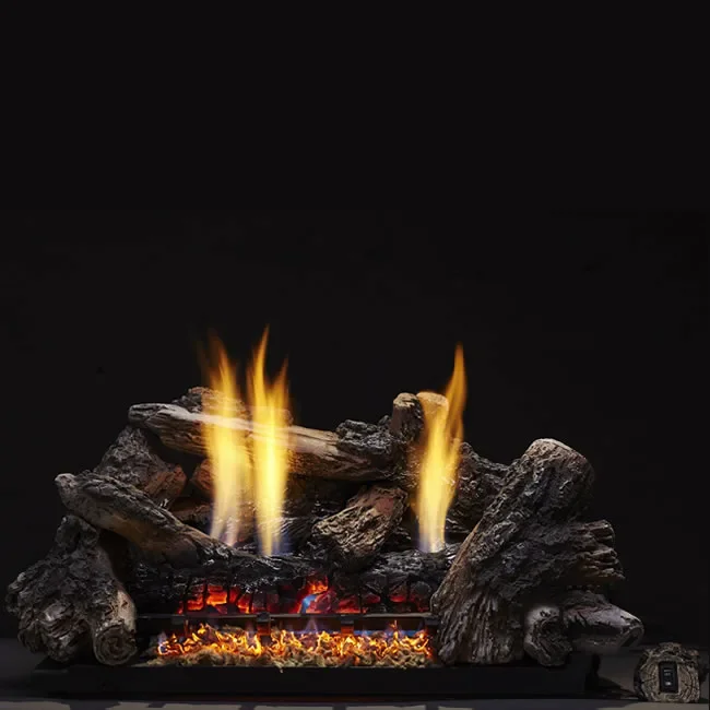 This Charisma 24" log set is available with electronic ignition or remote ready control valve. Remote ready meaning you can add a simple on / off remote, thermostat remote or simply connect it to a wall thermostat or wall switch. The IntelliFire Plus electronic ignition models come with the RC300 multi-function remote control that will light the pilot light, adjust the flame height and act as a thermostat. Please select control valve type before adding to cart.