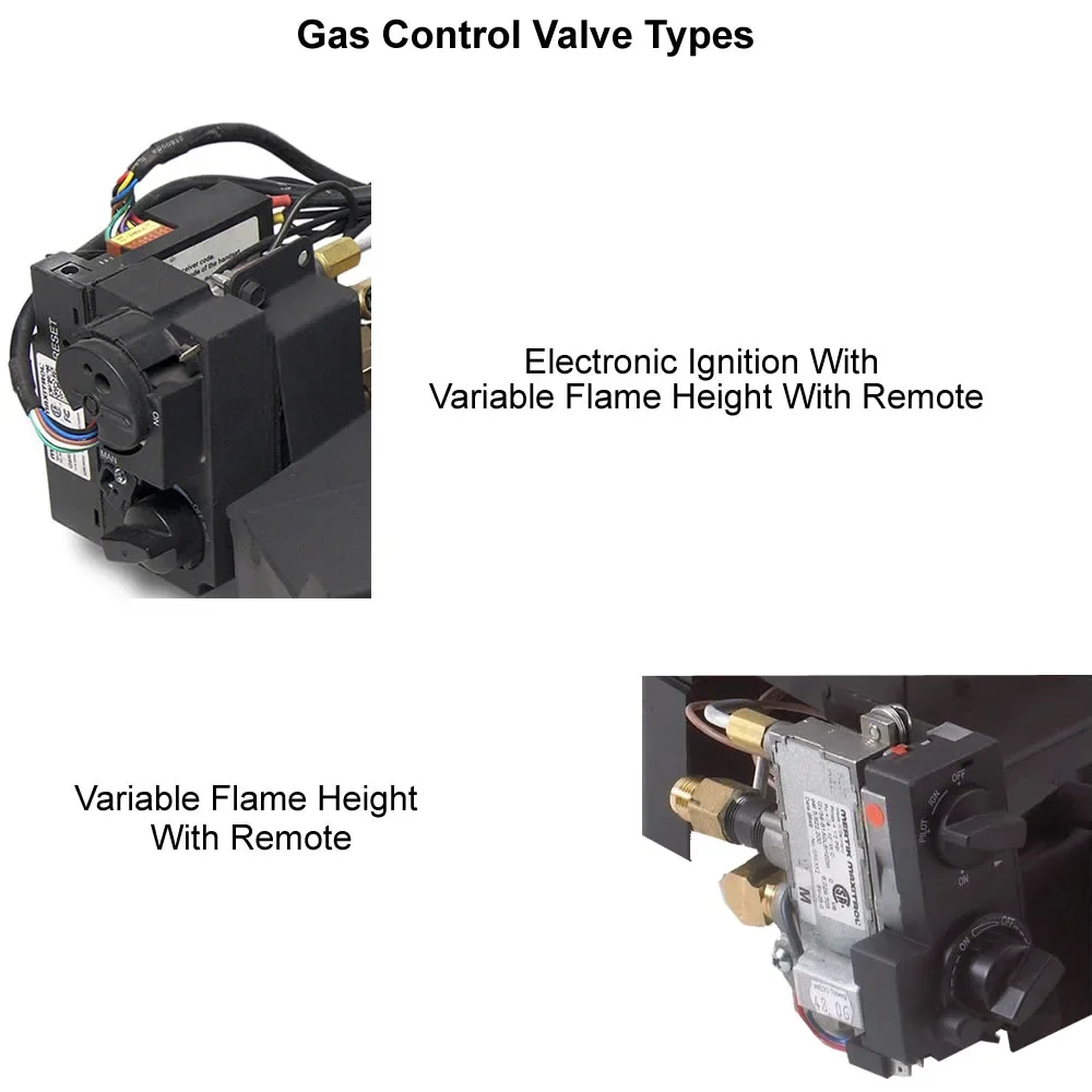 The 30 inch Foothill Oak log set is available with two different control valve options; Variable Flame Remote and Electronic Ignition Remote. Variable Flame remote models allows you to vary the flame height from high to low and anywhere in between from the included remote control. The variable remote will also turn the gas logs on and off as well. The Electronic Ignition models come with a variable flame height thermostat remote control that will allow you to turn the pilot light on and off, set a room temperature and also adjust the flame height. Please select control type before adding to cart.