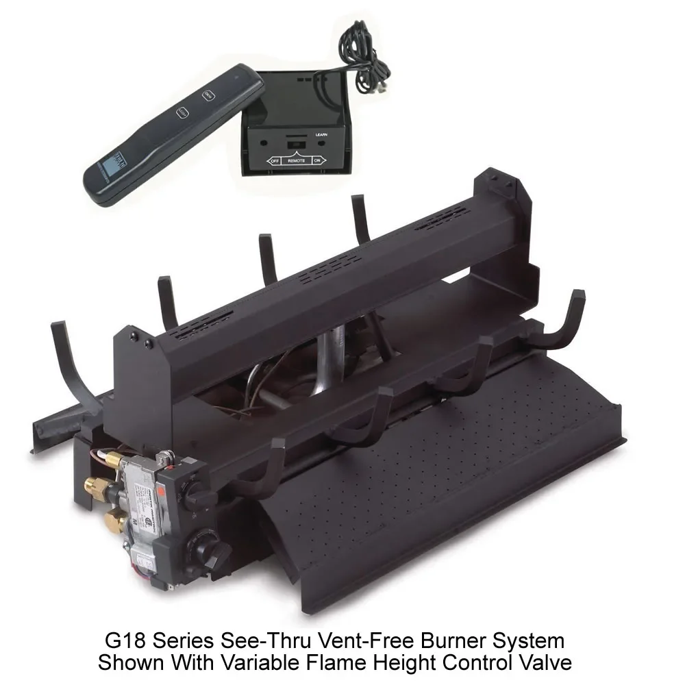 The Evening Fyre Split log sets come standard with aVariable Flame Remote Control. The Variable Flame remote allows you to vary the flame height from high to low and anywhere in between from the included remote control. The variable remote will also turn the gas logs on and off as well.