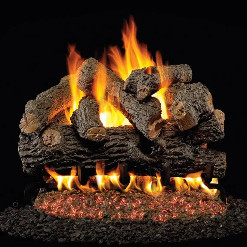 The Real Fyre 36" Royal English Oak vented gas log set is made from superior refractory ceramics that ensure the logs retain their strength at high temperatures. The G45 burner system burns efficiently while protecting natural resources and reducing pollution. The high definition oak bark and natural colors create an authentic wood look. Enjoy radiant heat while in operation and after set has been turned off. We also offer Vented Gas Log Accessories to enhance the look of your fireplace.