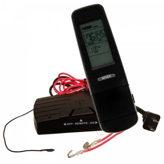 Features: Multi-Function Transmitter, Hardwired 110 VOLT Receiver, Timer Mode, Thermostat Mode, Room Temperature Readout and On/Off.
