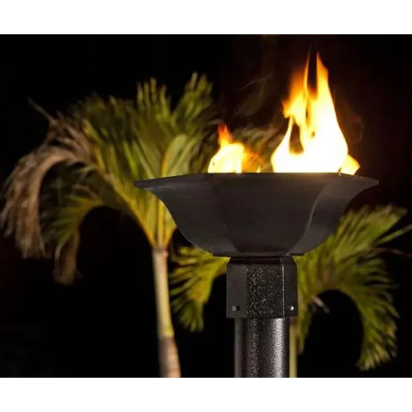 This large outdoor tiki style gas torch is excellent for any outdoor living area. Offering a warm ambiance for entertaining or just a romantic evening. The solid cast aluminum construction and brass burner system will last a lifetime and endure harsh outdoor elements.