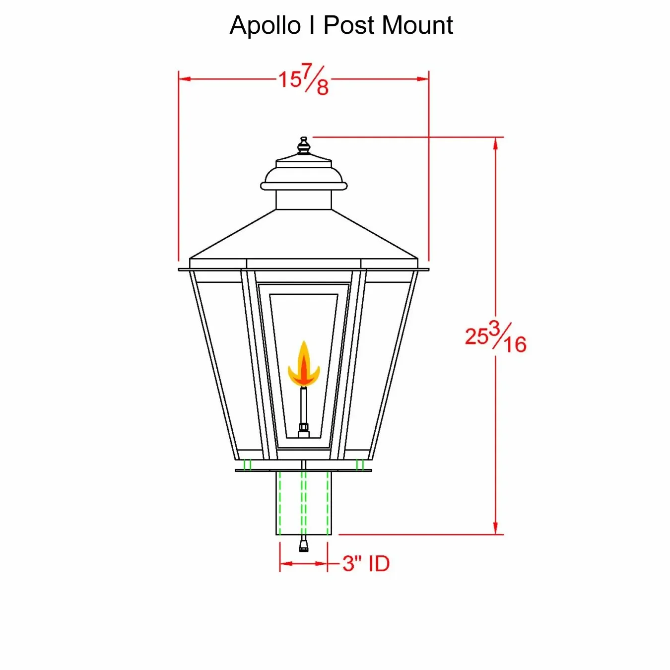 The Apollo I is a handcrafted all cooper gas lamp made in the USA by Legendary Lighting. Offered in match lit or electronic ignition open flame burner models for convenience and savings.