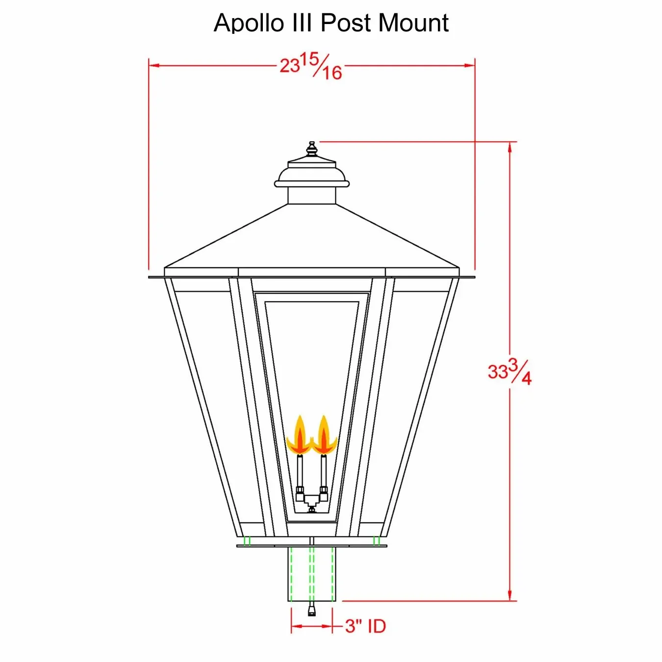 The Apollo III is a handcrafted all cooper gas lamp made in the USA by Legendary Lighting. Offered in match lit or electronic ignition open flame burner models for convenience and savings.
