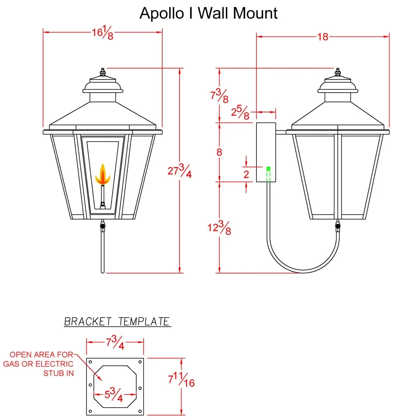The Apollo I is a handcrafted all cooper wall mount gas lamp made in the USA by Legendary Lighting. Offered in match lit or electronic ignition open flame burner models for convenience and savings.
