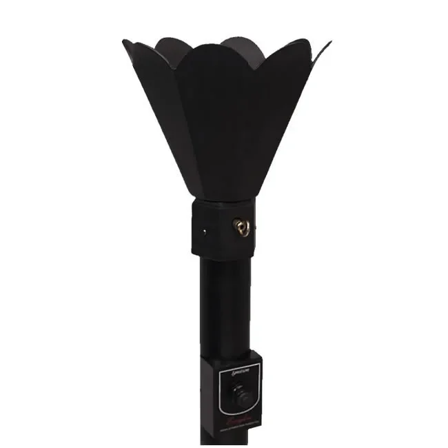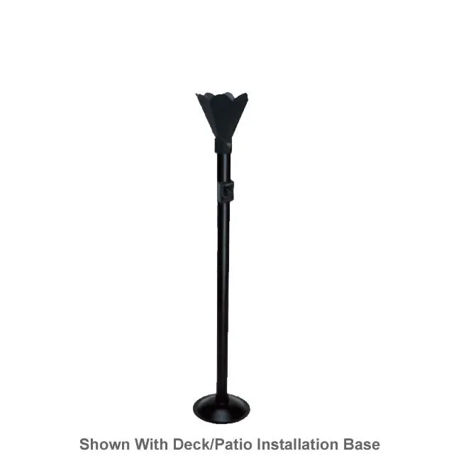 This gas tiki torch combo includes the Maui style torch head with on/off key, copper gas line supply tubing inside post and battery powered electronic ignition for fast starts with a push of a button. This outdoor tiki torch can be installed in-ground or on a patio or deck. Please choose your mounting application before adding to cart.