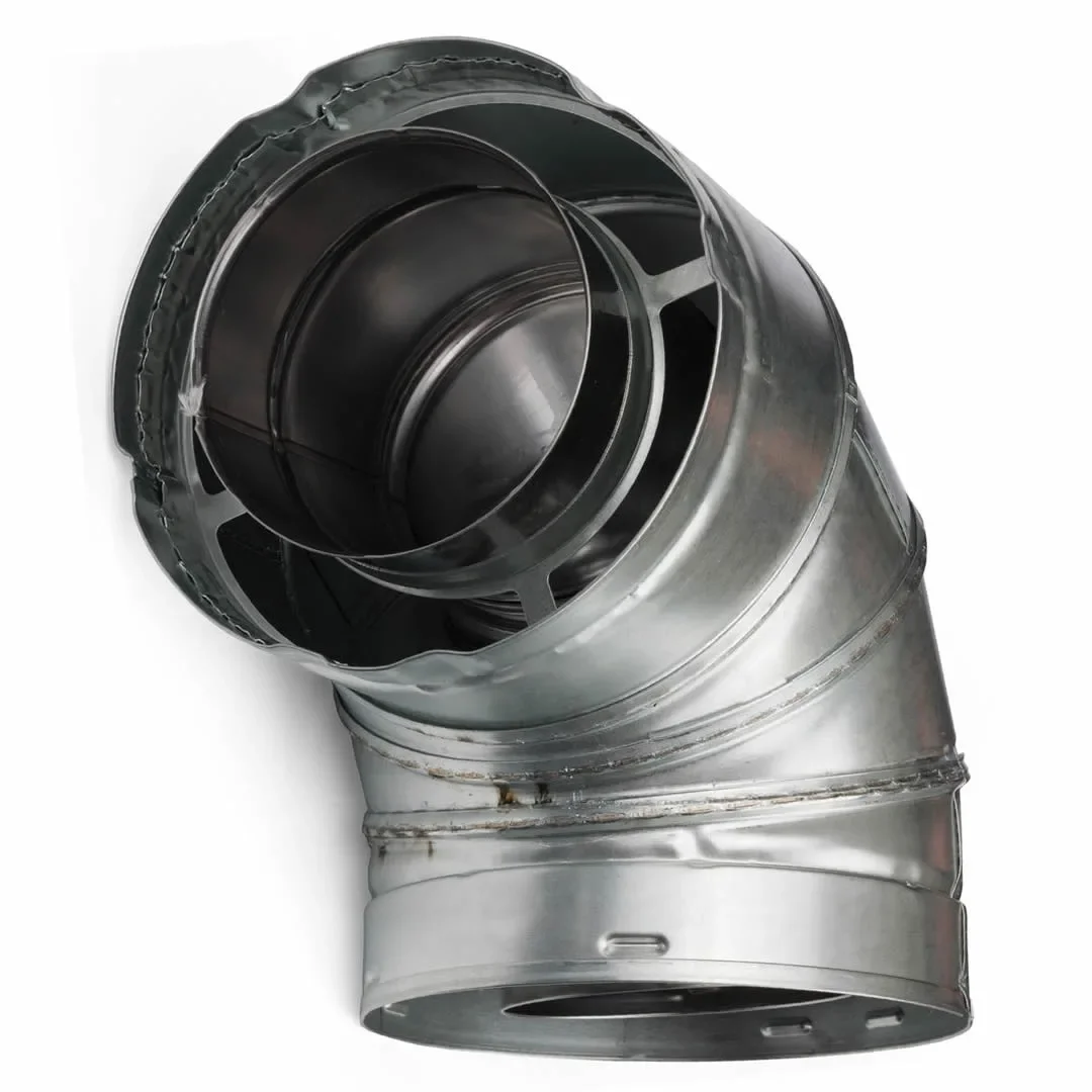 90 degree elbow for SLP series direct vent pipe used with select model Heatilator, Heat-N-Glo & Majestic gas fireplaces & stoves.
