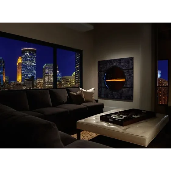 The Solaris is available in two models. Solaris36-ST is the world's thinnest see-through fireplace with a levitating flame and transparent Razor burner. Solaris 36-MR is a two-sided fireplace featuring the infinity flame, which provides a 6-foot deep illusion of flame and lighting effects.