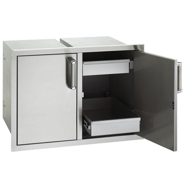 Fire Magic Premium stainless steel double access doors with two dual drawers. Matches Fire Magic Echelon series grills and made of all stainless steel. Great for storing utensils and large pots.