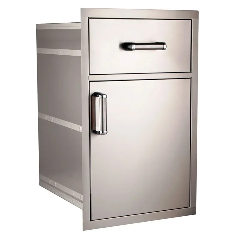 Our large Fire Magic pantry has fully enclosed cabinet and comes with a utensil drawer on top and two sliding storage trays in the bottom door.