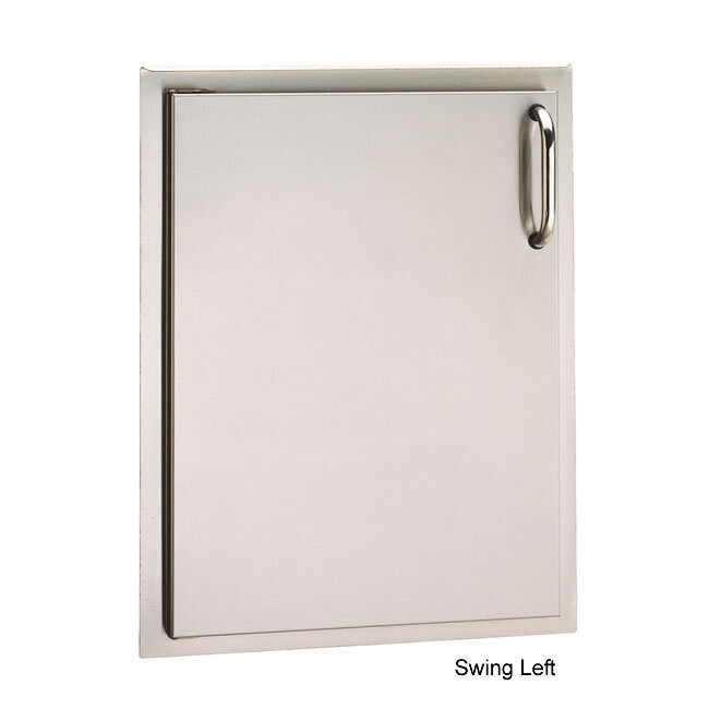 Fire Magic Select series single access door with Aurora style handles and a swing right or left option. Constructed of all stainless steel. Cut Out Opening is 24.5" High X 17" Wide