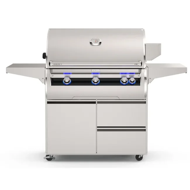 This Echelon series portable gas grill from Fire Magic features a Rotisserie & Back Burner and economical analog thermometer in the hood with a polished bezel. With all stainless steel construction and tons of luxurious features, Fire Magic provides master grillers with style, durability and a perfect grilling experience. Once you cook on a Fire Magic gas grill or barbecue, you'll never grill on anything else!