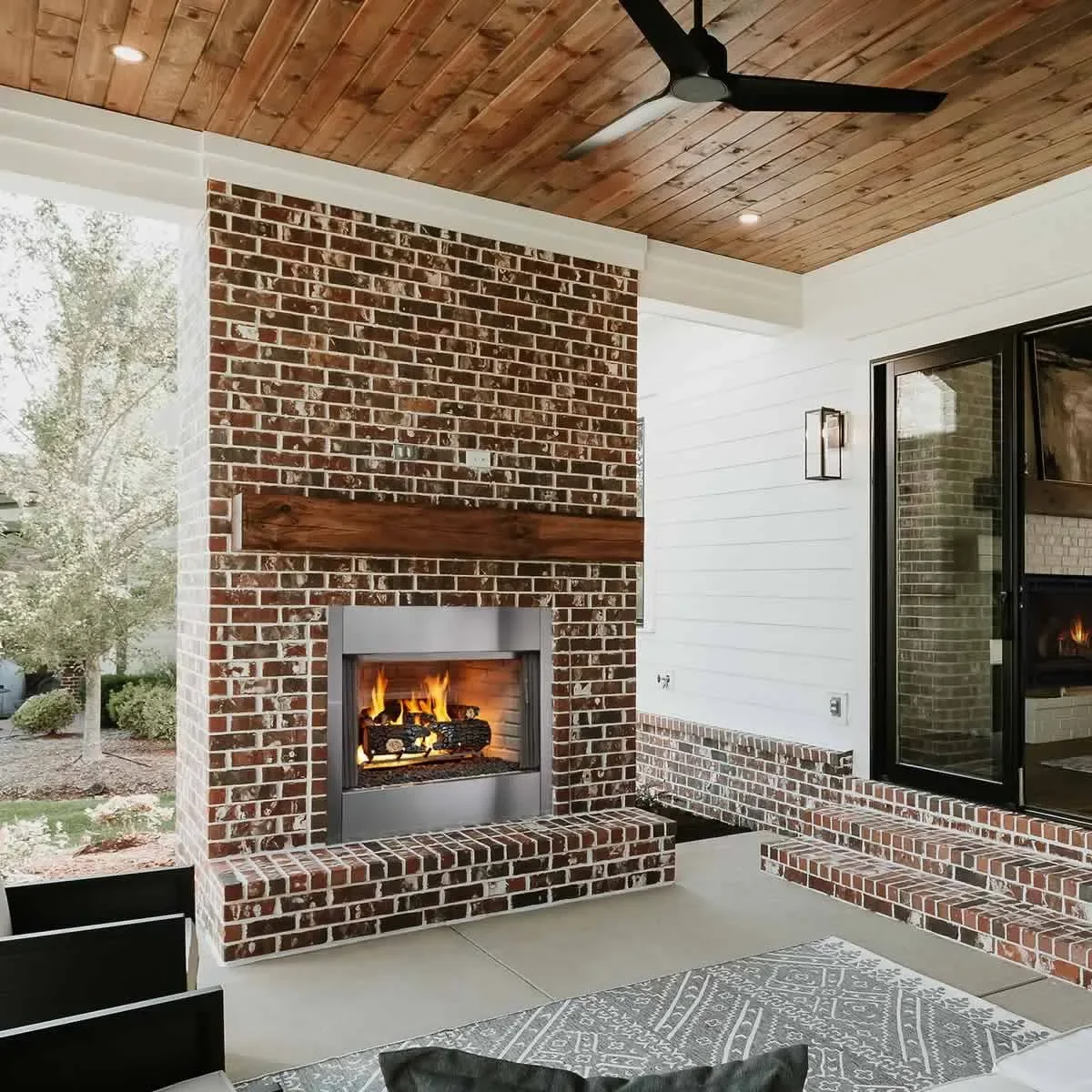The 42" Villawood outdoor wood burning fireplace is a great way to bring your backyard alive. Features a 42" wide x 20-7/8" high viewing area and can be used to burn wood or gas logs because it comes with knockouts on each side that allow a gas line to be run inside the fireplace.