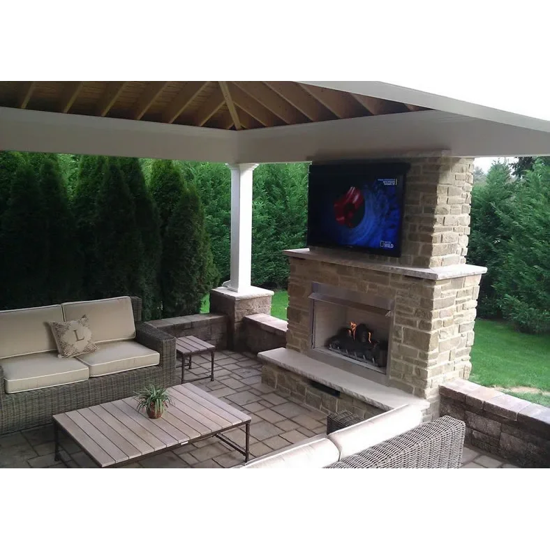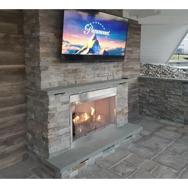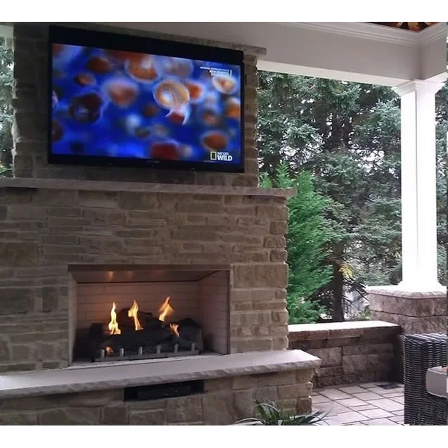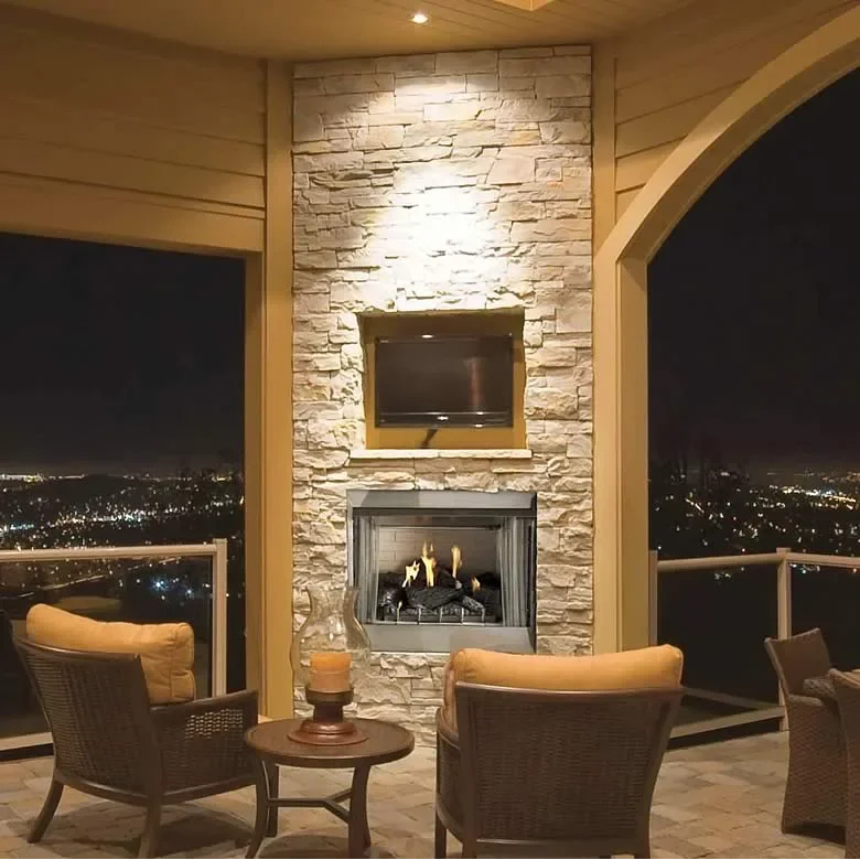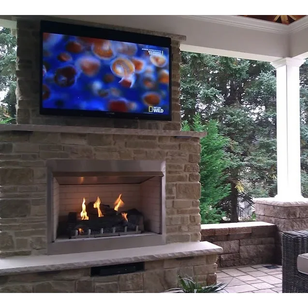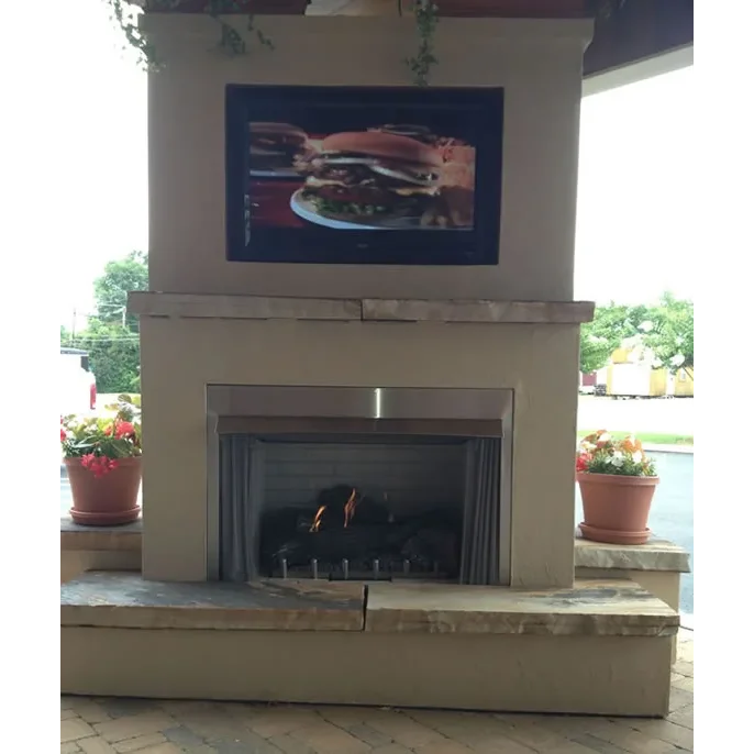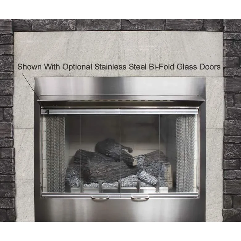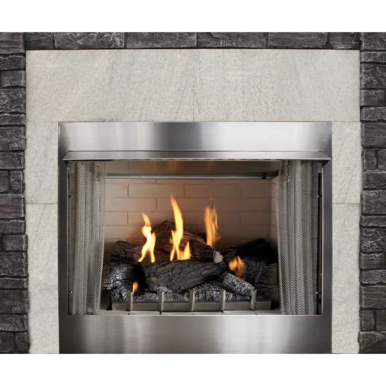 This traditional 36" outdoor gas fireplace is part of the Carol Rose collection by White Mountain Heath and features an all-stainless exterior. Inside the fireplace, a special stainless steel version of our popular Harmony burner lights up with 50,000 Btu of flame power. Comes standard with concrete interior brick liner and the refractory Wildwood log set that provides thermal mass radiant heat to help minimize temperature fluctuations for your guests. The fireplace is ventless and requires no venting.